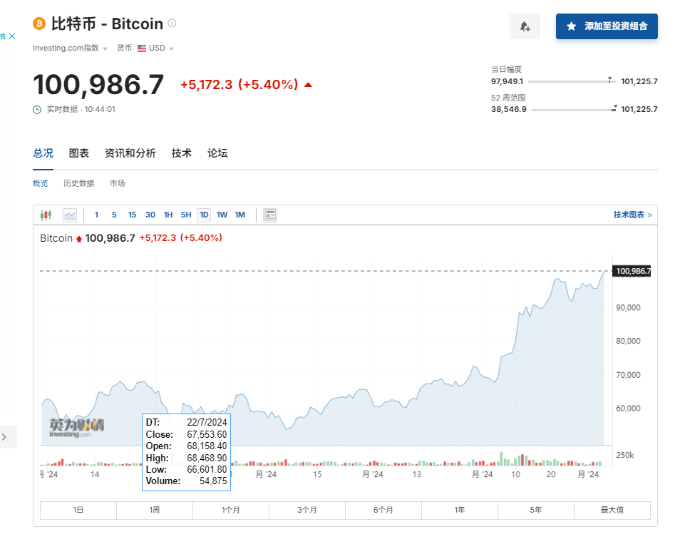 12月5日,比特币认真遏制10万好意思元,日内上升超5%,创历史新高。本年以来,比特币照旧累计上升近140%。